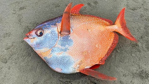 ओपाह (Opah) नावाचा एक मोठा मासा नुकताच अमेरिकेच्या ओरेगन राज्यातील समुद्र किनाऱ्यावर आढळुन आला आहे. 3.5 फुट लांब आणि 45 किलोचा हा मासा जखमी झाल्याने किनाऱ्यावर आल्याचे समजते आहे. (Beautiful Opah fish found in America)