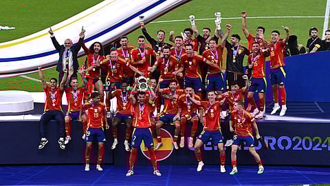 सामन्यातील चार मिनिटे बाकी असताना बदली खेळाडू मिकेल ओयार्थाबाल याने नोंदविलेल्या गोलच्या बळावर स्पेनने विक्रमी चौथ्यांदा युरो करंडक फुटबॉल स्पर्धा जिंकली. चुरशीच्या अंतिम लढतीत त्यांनी इंग्लंडला २-१ फरकाने नमविले.