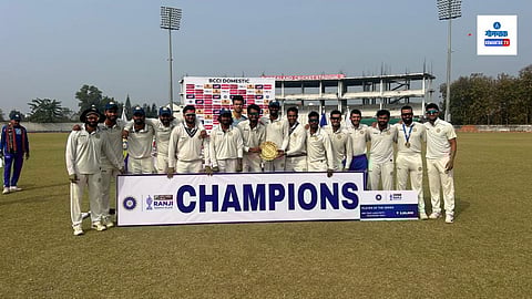 Goa Beats Nagaland: रणजी ट्रॉफी क्रिकेट स्पर्धेत गोव्याने 'प्लेट चॅम्पियनशिप' जिंकली. सोमवारी (27 जानेवारी) सोविमा येथे झालेल्या अंतिम सामन्यात गोव्याने नागालँडचा तब्बल 362 धावांनी पराभव केला. दुसऱ्या डावात कर्णधार दर्शन मिसाळने 48 धावांत 5 विकेट्स घेतल्या. स्नेहल कवठणकरला सामनावीर आणि मालिकावीर (प्लेट ग्रुप) म्हणून सन्मानित करण्यात आले. पुढील हंगामासाठी दोन्ही संघांना एलिट विभागात बढती देण्यात आली आहे. सामन्याच्या चौथ्या दिवशी गोव्याकडून स्नेहल आणि कश्यप जोडीने अफलातून फलंदाजी केली. स्नेहलने द्विशतकी दणका दिला. दोघांनीही नागालँडच्या गोलंदाजांचा चांगलाच समाचार घेतला.