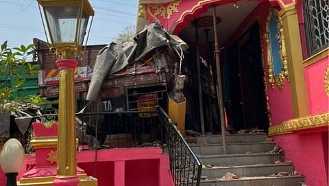 पणजीजवळच (Panjim) असलेल्या वेरे भागात हा मालवाहू ट्रकचा थरार पाहायला मिळाला आहे. भरधाव ट्रकचे अचानक ब्रेक निकामी झाल्याने तो एका मंदिरात घुसला. वेरे परिसरातील सरस्वती मंदिराचं या अपघातात मोठं नुकसान झालं आहे. ट्रक मंदिरात (Temple) घुसल्याने वेरे परिसरात एकच गोंधळ उडाला. या अपघातात ट्रकच्या दर्शनी भागाचंही मोठं नुकसान झालं आहे, तर मंदिराच्या एका बाजूचं नुकसान झाल्याचं दिसत आहे. चालकालाही किरकोळ इजा झाल्याची प्राथमिक माहिती मिळाली आहे.