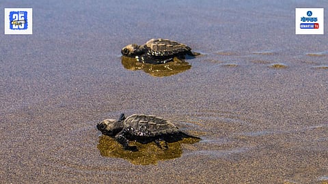 काणकोण: आगोंद सागरी कासव संवर्धन केंद्रातून या मोसमात पहिल्या घरट्यातून ५० पिल्ले समुद्रात सोडण्यात आली. आज गुरुवारी पहाटे घरट्यातून ही पिल्ले बाहेर आली. या घरट्यात ६५ अंडी होती. उर्वरित अंड्यांतून पिल्ले बाहेर येणे बाकी आहे, असे वन खात्याच्या दक्षिण गोवा सागरी क्षेत्राचे उपक्षेत्रीय अधिकारी राजेश नाईक यांनी सांगितले.