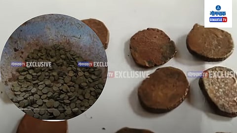 Ancient coins In Goa: नानोडा बांबर येथे विष्णू जोशी यांच्या खासगी जागेत सापडलेल्या पुरातन मध्ययुगीन नाण्यांची प्रत्यक्ष पाहणी करण्यासाठी पुरातत्व मंत्री सुभाष फळदेसाईंनी खात्याचे संचालक आणि इतर वरिष्ठ अधिकाऱ्यांसह सत्तरीतील नानोडा बांबर येथे बुधवारी प्रत्यक्ष भेट दिली. यावेळी विष्णू जोशी यांनी ती नाणी पुरातत्व खात्याकडे सुपूर्द केली.