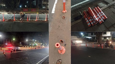 मोठा ट्रक भरून जुने लेन सेपरेटर कापून काढण्यात आले. लेन सेपरेटर कापून काढण्यात आल्याने त्यांचा पुर्नवापर होणार नाही. याशिवाय या परिसरात अनेक ठिकाणी वेली, झाडे झुडपांनी वेढलेला भागही स्वच्छ करण्यात आला आहे.