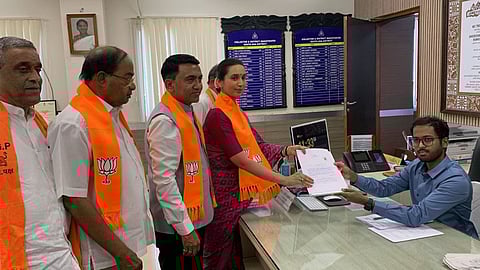 पल्लवी धेंपे, मुख्यमंत्री प्रमोद सावंत यांच्यासह राज्यातील मंत्री आणि भाजप कार्यकर्त्यांच्या उपस्थितीत दक्षिण गोवा जिल्हाधिकारी कार्यालयात दाखल झाल्या.