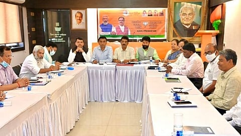 पणजीत काल भाजपची कोअर कमिटी आणि निवडणूक व्यवस्थापन समितीची संयुक्त बैठक पार पडली. यावेळी भाजपचे निवडणूक प्रभारी देवेंद्र फडणवीस (Devendra Fadanvis), सी.टी. रवी, दर्शना जरदोश, मुख्यमंत्री डॉ. प्रमोद सावंत, प्रदेशाध्यक्ष सदानंद शेट तानावडे, निवडणूक व्यवस्थापन कमिटीचे अध्यक्ष लक्ष्मीकांत पार्सेकर, संघटनमंत्री सतीश धोंड, संजीव देसाई, रमेश तवडकर यांच्यासह अन्य सदस्य उपस्थित होते. या निवडणुकीत विधानसभेच्या 38 जागा लढविणे निश्चित झाले असून अन्य जागांवर भाजप समर्थक उमेदवारांना पाठिंबा देण्याचा निर्णय झाल्याची माहिती आहे.