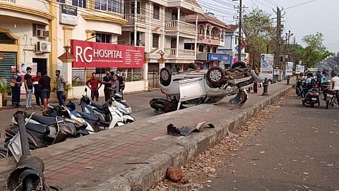 पणजी : पर्वरी येथे कारचा वीजेच्या खांबाला धडकून भीषण अपघात झाला आहे. आरजी हॉस्पिटल समोर रेंट अ कार वीजेच्या खांबाला धडक देत फूटपाथवर उलटल्याची घटना बुधवारी सकाळी घडली. या अपघातात कारमधील जोडप्याला किरकोळ इजा झाल्याची माहिती आहे.
