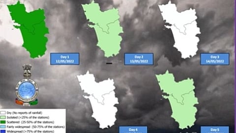 आज पहाटेच्या दरम्यान गोव्यात पावसाच्या तुरळक सरी बरसल्या आहेत. हवामान विभागाने व्यक्त केलेल्या अंदाजानुसार आज गोव्यात पावसाची शक्यता आहे. याबरोबर 13 आणि 16 मे रोजी उत्तर आणि दक्षिण गोवा जिल्ह्यांमध्ये विविध ठिकाणी पावसाची शक्यता असल्याचा ही अंदाज वर्तवण्यात आला आहे. (Chance of rain in North and South Goa today )
