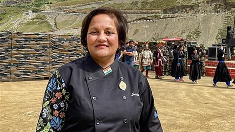 Goa Chef Sarita Chavhan at Kargil : पतीच्या निधनानंतर उदरनिर्वाहासाठी म्हणून आचारी बनलेल्या गोव्यातील सरिता चव्हाण आता कारगिलमध्ये एक दिवस सैनिकांसाठी रूचकर, स्वादिष्ट भोजन बनवतात. 26 जुलै रोजी कारगिल विजय दिनानिमित्त दिल्या जाणाऱ्या मेजवानीतील भोजन बनविण्याची संधी सरिता चव्हाण यांना मिळाली.