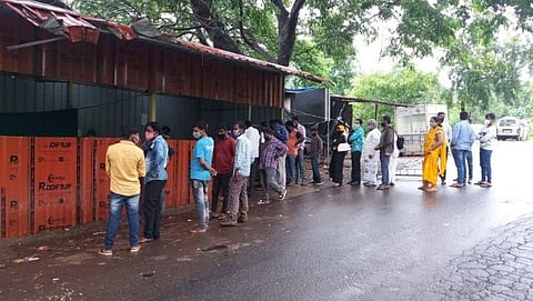 कोविड चाचणी साठी भर पावसात रांगा