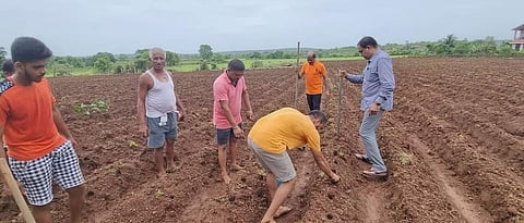 डिचोली: डिचोली तालुक्यातील साळ गावा पाठोपाठ कृषीप्रधान 'धुमासे' या छोट्याशा गावातील शेतकरीही आता हळद लागवडीकडे वळले आहेत. माजी आमदार नरेश सावळ यांच्या पुढाकारातून आणि कृषी खात्याच्या सहकार्याने धुमासेतील पाच कुटुंबातील शेतकऱ्यांनी मिळून दहा हजार चौरस मीटर क्षेत्रफळ असलेल्या शेतजमिनीत (अडीज एकर) हळद लागवड केली आहे. (Cultivation of turmeric by Bicholim farmers)