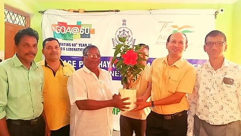 मोरजी: आगरवाडा चोपडे पंचायतीचे स्वयंपूर्ण मित्र दीपक पेडणेकर याना आत्मनिर्भर भारत स्वयंपूर्ण गोवा अंतर्गत स्वयंपूर्ण मित्र पुरस्काराने पंतप्रधान नरेंद्र मोदी (PM Narendra Modi) यांच्या हस्ते सन्मानित केल्याबद्दल आगरवडा चोपडे (Agarwada Chopde Panchayat) पंचायती तर्फे एका विशेष कार्यक्रमात सरपंच भगीरथ गावकर यांच्या हस्ते फुलाचे रोपटे आणि सन्मानपत्र देवून अभिनंदन करण्यात आले.