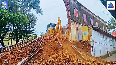 पेडणे: पेडणे बाजारपेठेतील सात महिन्यांपूर्वी एक भाग कोसळलेली पोर्तुगीजकालीन इमारत पेडणे नगरपालिकेच्या आदेशानुसार पाडण्याचे काम सुरू झाले आहे.