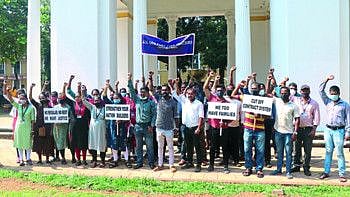 गेल्या 27 ऑक्टोबरपासून 54 कर्मचाऱ्यांनी हे आंदोलन छेडले आहे. आंदोलनाच्या दुसऱ्याच दिवशी एकाची प्रकृती खालावली होती मात्र त्यानंतर त्यात सुधारणा झाल्याने पुन्हा तो या आंदोलनात सामील झाला आहे. या आंदोलनामध्ये काही महिला कर्मचारीही आहेत.