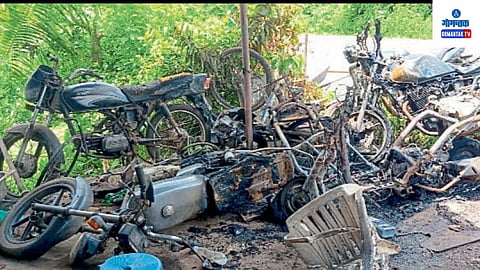 डिचोली: मुळगाव येथील एका गॅरेजमध्ये दुरुस्तीसाठी ठेवलेल्या दुचाकी जाळण्याचा प्रकार घडला असून, या घटनेत चार दुचाकी जळून भस्मसात झाल्या. या घटनेत दोन लाखांहून अधिक रुपयांचे नुकसान झाल्याची माहिती गॅरेजमालकाने दिली. आग वेळीच नियंत्रणात आल्याने मोठा अनर्थ टळला.