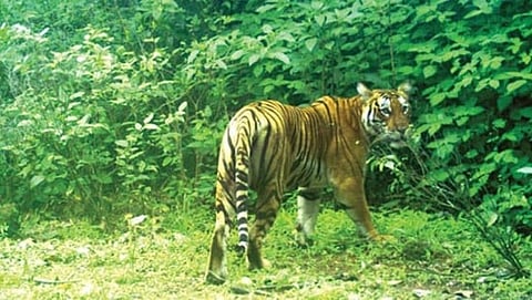 गेल्या दोन - तीन महिन्यांपासून चोर्ला घाटाच्या सुर्ला व परिसरातील भागात पट्टेरी वाघांचे वारंवार दर्शन होत आहे. गोवा वन खात्याने (Goa forest department) बसवलेल्या कॅमेरा ट्रपमध्ये हे छायांत्रित झाले आहे. 23 व 30 जून (23 and 30 june2021)रोजी सुर्ला(surla sattari) भागात हे वाघ छायांकित झाले. यामध्ये 3 वाघ असल्याची स्पष्ट झाले. दरम्यान वनखात्याच्या वरिष्ठ अधिकाऱ्यांने( Senior Official At Goa Forest Department ) याची छायाचित्रे नुकतीच प्रसारित केली आहे. त्यामुळे गोवा सरकारने या वाघांची (Tiger) पुष्टी केली आहे.