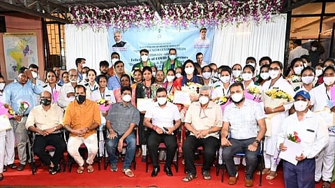 खांडोळा (प्रतिनिधी) ः कोविड (covid19) महामारीच्या काळात डॉक्टर, परिचारिका व इतर कर्मचाऱ्यांचे कार्य कौतुकास्पद आहे. त्यांनी या काळात अनेकांचे प्राण वाचविले, चांगली सेवा दिली, असे प्रतिपादन आरोग्यमंत्री विश्वजित राणे (Health minister) यांनी खोर्ली-जुनेगोवे येथील प्राथमिक आरोग्य केंद्रातील (Khorli Health centre कोविड योद्ध्यांच्या गौरवप्रसंगी केले. खोर्ली प्राथमिक आरोग्य केंद्रात कर्तव्य बजावणारे डॉक्टर, परिचारिका, कर्मचारी, सुरक्षा रक्षक आणि पोलिस अधिकाऱ्यांचा गौरव केला. यावेळी कुंभारजुवेचे आमदार पांडुरंग मडकईकर, (Pandurang Madkaikar) डॉ. डिसा, डॉ. राजेंद्र बोरकर, आरोग्याधिकारी केदार रायकर, जिल्हा पंचायत सदस्य सिद्धेश नाईक, सरपंच, पंच उपस्थित होते.