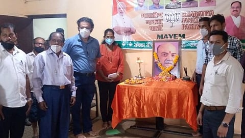 डिचोली: मये भाजप मंडळातर्फे भाजपचे संस्थापक स्व. डॉ. श्यामाप्रसाद मुखर्जी (Dr. Shyamaprasad Mukherjee) यांची जयंती साजरी करण्यात आली. त्यानिमित्त डिचोली येथे आमदार प्रवीण झांट्ये (Praveen Zantye) यांच्या कार्यालयात आयोजित कार्यक्रमात त्यांनीच डॉ. मुखर्जी यांच्या फोटोस पुष्पहार अर्पण करून आदरांजली वाहिली.
