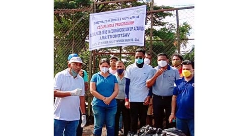 फातोर्डा: गोव्याच्या क्रीडा व युवा व्यवहार खात्याच्या सासष्टी कचेरीतर्फे दोन दिवस स्वच्छता मोहिमेचे आयोजन केले. ही मोहीम आझादीका अमृत महोत्सव साजरा करण्यासाठी केंद्र सरकारने देशभरात सुरु केलेल्या स्वच्छता मोहिमेचा भाग होता. पहिल्या दिवशी 55 तर दुसऱ्या दिवशी 60 पेक्षा जास्त क्रिडापटू व शारिरीक शिक्षणाचे शिक्षकांनी या मोहिमेत भाग घेतला. पहिल्या दिवशी सकाळी 8 वाजता ही मोहिम रवीन्द्र भवन मडगाव परीसरातुन सुरु झाली.