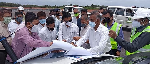 मोपा विमानतळ प्रकल्पामध्ये (Mopa Airport Project) बांधकाम कंपनीच्या हलगर्जीपणामुळे विमानतळ परिसरातील उगवे पंचायत (Ugve Panchayat) क्षेत्रातील तसेच या परिसरात मोठ्या प्रमाणात चक्रीवादळाच्या (Cyclone) दरम्यान पावसाचे पाणी साठवून मोपा विमानतळ प्रकल्पाला योग्य नियोजन नसल्याने त्याचं पाणी आणि दगड मोठ्या प्रमाणात येथील शेतात तसेच तुळसकर वाडी (Tulaskar Wadi) येथील शेतात घेऊन मोठ्या प्रमाणात शेतकऱ्यांचे नुकसान झाले होते. या भागाची पाहणी करण्यासाठी खास मोपा विमानतळ प्रकल्पावर गोव्याचे मुख्यमंत्री डॉ. प्रमोद सावंत (Dr. Pramod Sawant) यांच्याबरोबर गोवा राज्याचे उपमुख्यमंत्री बाबू आजगावकर (Babu Azgavkar), मोपा विमानतळ बांधकाम कंपनीचे सी.ई.ओ. आर.वि.शेषन, मोपा विमानतळ प्राधिकरणाचे अधिकारी श्री. शानबाग उपस्थित होते.