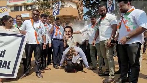 Goa Congress: प्रदेश काँग्रेसच्या वतीने आज सकाळी पाटो पणजी येथील एलआयसी कार्यालयासमोर निदर्शने करण्यात आली. यावेळी काँग्रेसच्या कार्यकर्त्यांनी गौतम अदानींच्या पुतळ्याचे दहन तसेच जोरदार घोषणाबाजी केली.