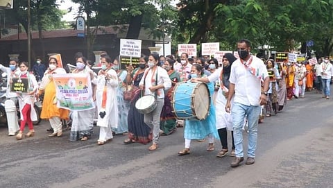 पणजी: गॅस सिलेंडर त्याचबरोबर पेट्रोल व डिझेलच्या दरामध्ये झालेल्या भरमसाठ वाढीच्या विरोधात आज गोवा प्रदेश महिला काँग्रेस (Goa Pradesh Women's Congress) आणि गोवा प्रदेश युवा काँग्रेस यांच्यातर्फे संयुक्तपणे एका मोर्चाचे आयोजन करण्यात आले. काँग्रेस कार्यालय ते आझाद मैदान असा हा मोर्चा निघाला. काँग्रेसच्या महिला विभागाच्या अध्यक्ष बिना नाईक, प्रदेश काँग्रेसचे अध्यक्ष गिरीश चोडणकर (Girish Chodankar) व युवा शाखेचे अध्यक्ष एडवोकेट वरद म्हार्दोळकर (Varad Mhardolkar) यांच्या नेतृत्वाखालील या मोर्चामध्ये महिला मोठ्या प्रमाणात सहभागी झाल्या होत्या.