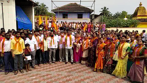 Goa Election 2022: विधानसभा निवडणूकीला (Goa Assembly Election 2022) जमतेम चार महिने शिल्लक असून पेडणे मतदारासंघातून मगो पक्षाच्या वातीने प्रवीण आर्लेकर (MGP Leader Pravin Arlekar) यांनी आपल्या प्राचाराचा शुभारंभ कोरगाव (Korgaon) येथून श्री देव कमळेश्वर , श्री देवी भुमिका व देव द्वारपाल यांना श्रीफळ ठेवून केला. यावेळी शेकडे कार्यकर्ते उपस्थित होते. मगोचे चिन्ह आसलेले शेले गळ्यात घालून तसेच टोप्या घालून उपस्थित मगो कार्यकर्त्यांनी "प्रवीण आर्लेकर तुम आगे बढे हम तुमारे साथ है" अशा घोषणा देत देऊळवाडा येथील तसेच कोरगाव परिसार मगोमय झाला.