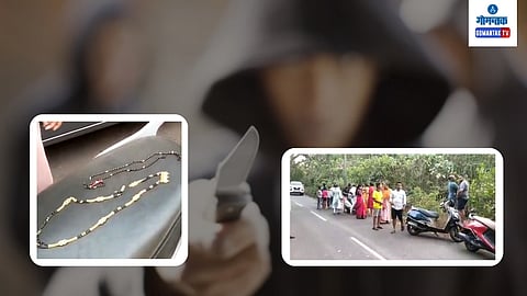 Goa Theft Case: कोरगाव पेठेचा वाडा या मुख्य रस्त्यावर चोरट्यांनी महिलेचे मंगळसूत्र हिसकावण्याच्या प्रयत्न केलाय. या घटनेमुळे परिसरात एकच खळबळ माजली असून दिवसाढवळ्या घडलेल्या प्रकाराने महिलावर्गात दहशत निर्माण झाली आहे.