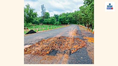 सत्तरी तालुक्यातील अनेक गावांत उन्हाळ्यात हॉटमिक्स पद्धतीने रस्त्यांचे डांबरीकरण केले होते. त्यात वाळपई-ठाणे मार्गाचाही समावेश होता. कोपार्डे येथे हा रस्ता पहिल्याच पावसात खचला. त्याचे वृत्त दैनिक ‘गोमन्तक’ने शुक्रवारी प्रसिद्ध केले होते. त्यानंतर जागे झालेल्या सरकारी यंत्रणेने आता या खड्ड्यांमध्ये मुरूम टाकून तात्पुरती मलमपट्टी केली आहे.