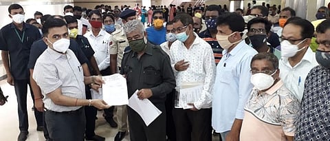 डिचोलीतील सेझा वर्कर्स युनियनचे अध्यक्ष सिद्धेश परब, उपाध्यक्ष मानूयल फर्नांडीस, सचिव आत्माराम तिळवे, सहसचिव दिनेश दिवेकर यांच्यासह सेझा, साळगावकर आणि अन्य खाण कंपनींचे कामगार उपस्थित होते.