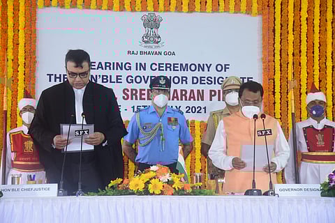 पणजी: गोव्याचे नवनियुक्त राज्यपाल श्रीधरन पिल्लई (Governor Sreedharan Pillai) यांनी आज मुंबई उच्च न्यायालयाचे मुख्य न्यायमूर्ती दिपांकर दत्ता (Chief Justice of the High Court Dipankar Datta) यांच्या उपस्थितीत काबो राजभवनात राज्यपाल पदाची शपथ (sworn) घेतली.