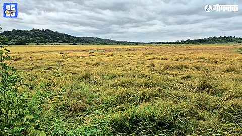 मयेसह बोर्डे, पिळगाव आदी डिचोलीतील बहुतांश भागात भातशेती पूर्णपणे पिकून शेतकरी कापणीच्या प्रतीक्षेत आहेत. दिवाळीच्या पूर्वसंध्येपासून आज गुरुवारपर्यंत सलग पाच दिवस पर्जन्यवृष्टी झाली आहे. या तडाख्यात डिचोलीतील विविध भागातील भातशेतीत पाणी साचले असून, काही ठिकाणी भाताची कणसे आडवी झाली आहेत. बळीराजाने कापणीच्या कामाला हात घालण्याची तयारी केली होती. मात्र पावसाने कहर केल्याने शेतीत पाणी साचून भाताची कणसे आडवी झाल्याने कापणीची कामे लांबणीवर पडली आहेत.