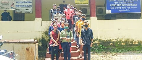 वाळपई : सत्तरी (Satari) तालुक्यात सद्या ऑनलाईन शिक्षणाचे (Online Education) तीन तेरा वाजले आहेत. सत्तरी तालुक्याच्या ग्रामीण भागात मोबाईल मनोरा यांची सेवा विस्कळीत झालेली आहे. त्यामुळे विद्यार्थाचे (Student) शिक्षणा विषयी मोठे नुकसान होते आहे. नगरगाव ग्रामपंचायत क्षेत्रातील साट्रे, देरोड, कोदाळ या अगदी दुर्गम ग्रामीण गावात रेंजची चांगली सेवा नसल्याच्या कारणावरून आज मंगळवारी वरील गावच्या सुमारे पंचवीस तीस विद्यार्थांनी वाळपईतील भारत संचार निगम सरकारी कंपनीच्या कार्यालयावर धडक देऊन कैफियत मांडली.
