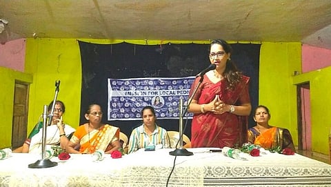 मोरजी : महिलांच्या (Women) उन्नतीसाठी मिशन फॉर लोकलचे महिला मंच कार्यरत असणार असल्याची ग्वाही मंचच्या अध्यक्षा रश्मी राजन कोरगावकर (Rashmi Korgaonkar) यांनी देताना महिलांनी स्वावलंबी होण्यासाठी आणि आपल्या घरसंसाराला हातभार लावण्यासाठी विविध प्रकारचे प्रशिक्षणात सहभागी होवून स्वताचा व्यवसाय करावा असे आवाहन रश्मी कोरगावकर यांनी न्हयबाग पोरस्कडे पंचायत सभागृहात महिलांसाठी विविध प्रशिक्षण कार्यशाळा, विविध स्पर्धा आयोजित केल्या होत्या. त्याचे बक्षीस वितरण आणि प्रमाणपत्रे व महिला ग्रुप साठी व्यवसाय करण्यासाठी साहित्य वितरीत केल्यानंतर बोलत होत्या.