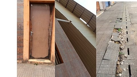 त्याच प्रमाणे सुरवातीच्या काळातच बसस्थानकाच्या छप्परावरील पत्रे योग्य प्रकारे घातले नसल्याने या स्थानकाला पहिल्याच पावसात गळती लागली होती. त्यावेळी काही प्रमाणात दुरुस्ती करून डागडुजी केली होती. परंतू त्याचा काहीच परिणाम झाला नसल्याने गेल्या कित्येक वर्षांपासून गळती सुरू आहे. त्यामूळे रंगरंगोटी खराब होताना, लाकडी दरवाजे, खिडक्या, तसेच गाळ्यांचे शॅटर सुद्धा खराब झाले आहेत.