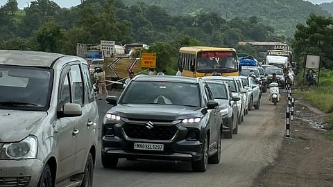 गोव्याच्या दिशेने जाणाऱ्या मार्गावर प्रचंड वाहतूक कोंडी त्रास गणेशभक्तांना सहन करावा लागत आहे. गेल्या चोवीस तासांपासून काही प्रवासी या कोंडीत अडकून पडल्याचे काही प्रवाशांनी सोशल मिडियावर प्रतिक्रिया व्यक्त केली आहे.