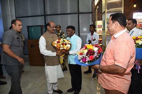 OM Birla In Goa: सभापती रमेश तवडकर यांच्या संकल्पनेतून साकार झालेल्या राज्यातील अनोख्या श्रम-धाम योजनेतील वीस घरांचे गुरुवारी (ता.15) लोकसभा सभापती ओम बिर्ला यांच्या हस्ते हस्तांतरण करण्यात येणार आहे. यासाठी ओम बिर्ला गोव्यात दाखल झाले आहेत. बिर्ला यांचे सभापती रमेश तवडकर, राजशिष्टाचार मंत्री माविन गुदिन्हो यांनी पुष्पगुच्छ देऊन स्वागत केले.