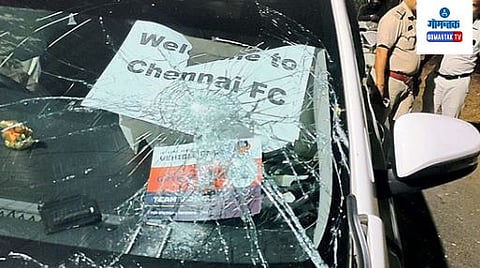 मडगाव,धावत्या कारवर माड कोसळण्याची घटना काल रात्री उशिरा घडली. या कारमधून चेन्नईयीन एफसी क्लबचे चार खेळाडू प्रवास करीत होते.