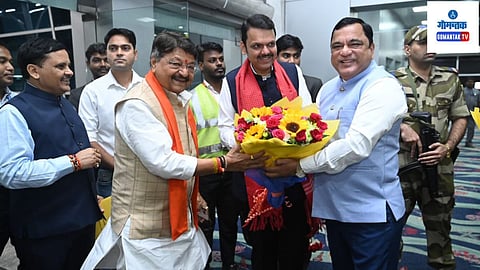 मडगाव: दोन दिवसांचे विशेष अधिवेशन उरकून महाराष्ट्राचे मुख्यमंत्री देवेंद्र फडणवीस आज (०९ डिसेंबर) उशीरा रात्री गोव्यात दाखल झाले आहेत. दक्षिणेतील दाबोळी विमानतळावर फडणवीसांचे गोव्याचे राजशिष्टाचार मंत्री मॉविन गुदिन्हो यांनी स्वागत केले.