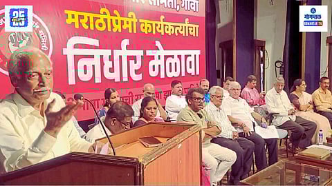 पणजी: मराठीप्रेमींच्या निर्धार मेळाव्यात हजारोंच्या संख्येने उपस्थित मराठी भाषिकांनी मराठीला राजभाषेचा दर्जा मिळवण्यासाठी ठाम निर्धार व्यक्त केला. मेळाव्याचे नेतृत्व मराठी राजभाषा निर्धार समितीचे राज्य निमंत्रक प्रा. सुभाष वेलिंगकर यांनी केले. या मेळाव्यामुळे गोव्यातील मराठी आंदोलनाला आक्रमक वळण मिळाले आहे.