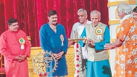 फोंड्यातील राजीव गांधी कला मंदिरात काल रविवारी नागेश महालक्ष्मी प्रासादिक नाट्यसमाज संस्थेच्या अमृतमहोत्सवी वर्षाचा सांगता समारोपात ढवळीकर बोलत होते. यावेळी व्यासपीठावर गोमंत विद्या निकेतनचे अध्यक्ष तथा प्रसिद्ध नाट्यसमीक्षक जनार्दन वेर्लेकर, श्री महालक्ष्मी संस्थानचे अध्यक्ष हर्षद कामत, नागेश महालक्ष्मी नाट्यसमाजाचे अध्यक्ष अजित केरकर व सचिव अरुण काळे आदी उपस्थित होते.