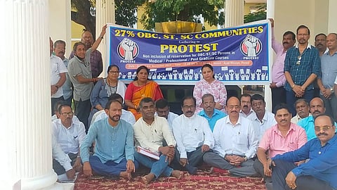 पणजी: राज्यातील वैद्यकीय, व्यावसायिक व पदव्युत्तर अभ्यासक्रमासाठी आरक्षण देण्यासाठी इतर मागासवर्गीय, अनुसूचित जाती व जमातीच्या समाजाने आज पणजीतील आझाद मैदानावर धरणे धरले आहेत.