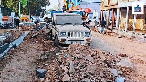 पणजी: पणजी शहर स्मार्ट बनविण्याचे इंद्रधनुष्य ‘इमेजिन पणजी स्मार्ट सिटी विकास लिमिटेडने (आयपीएससीडीएल) पेलले आहे. सध्या दुसऱ्या टप्प्याचे काम गतीने सुरू आहे. या कामांमुळे खोदकाम झालेल्या डबऱ्यात खनिज खात्याचे अनेक वर्षांपासून बंद पडलेले वाहन अडकून पडले की काय? असा सवाल उपस्थित होत आहे.