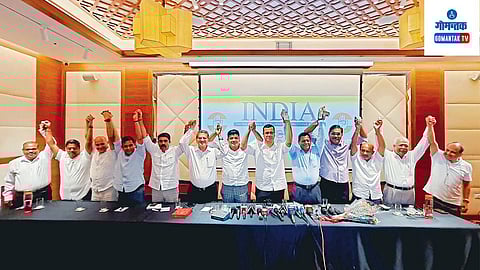 पणजीत इंडिया आघाडीतर्फे घेण्यात आलेल्या पत्रकार परिषदेला दक्षिण गोवा नवनिर्वाचित खासदार कॅप्टन विरियातो फर्नांडिस, विरोधी पक्षनेते युरी आलेमांव, काँग्रेस प्रदेशाध्यक्ष अमित पाटकर, गोवा फॉरवर्ड पक्षाचे अध्यक्ष व आमदार विजय सरदेसाई, आम आदमी पक्षाचे अध्यक्ष ॲड. अमित पालेकर, राष्ट्रवादी काँग्रेस प्रदेशाध्यक्ष जुझे फिलिप डिसोझा, शिवसेना अध्यक्ष जीतेश कामत, आमदार ॲड. कार्लोस फेरेरा, आमदार एल्टन डिकॉस्ता, आमदार वेन्झी व्हिएगश तसेच एम. के. शेख, तुलिओ डिसोझा उपस्थित होते.
