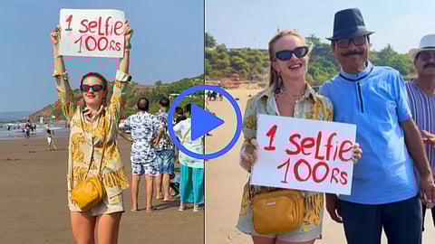 रशियन पर्यटक अंजेलिना सध्या गोव्यात पर्यटनासाठी आली आहे. गोव्यात मोरजी बीचवर असतानाचा तिने एक व्हिडिओ Instagram वर पोस्ट केला आहे. या व्हिडिओत अंजेलिना हातात एक सेल्फीसाठी 100 रुपये, असा फलक घेऊन उभी असल्याचे दिसत आहे. तिच्याकडे येणारे पर्यटक सेल्फीसाठी १०० रुपये देऊन सेल्फी काढताना दिसत आहेत.