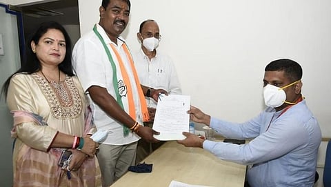 वास्को : काॅंग्रेस पक्षाचे मुरगाव मतदार संघातील उमेदवार संकल्प आमोणकर यांनी आज आपला उमेदवारी अर्ज निर्वाचन अधिकारी दत्तराज गावस देसाई यांच्या समोर सादर केला. निवडणूक आयोगाच्या नियमांचे पालन करुन आमोणकर यांनी अर्ज भरला. यावेळी त्यांच्या सोबत पत्नी श्रद्धा, निवडणूक एजंट शरद (नितीन) चोपडेकर उपस्थित होते.
