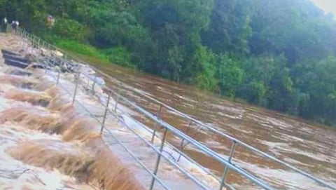 Sattari: आज दुपार पासून सुरू असलेल्या परतीच्या पावसामुळे सत्तरी (Sattari) तालुक्यातील नद्या-नाल्यातील पाण्याची पातळी वाढली आहे. रगाडा नदीची (Ragada river) पाण्याची पातळी वाढल्यामुळे पैकुळ गावात जाण्यासाठी पर्यायी व्यवस्था म्हणून पैकुळ (ठाणे)भागातील व मुरमुणे येथील बंधाऱ्यावर उभारलेला पादपूल पाण्याखाली (Pool under water) गेला. यामुळे या पूलावरुन चालत जाणे धोक्याचे बनल्याने त्यांवरून न जाता नदिचं पाणी कमी होईस्तोवर त्या ठिकाणी थांबून नंतर पैकुळवासीयांनी गाव गाठला असे या ठिकाणी हजर असलेल्या नागरिकांनी सांगितले.