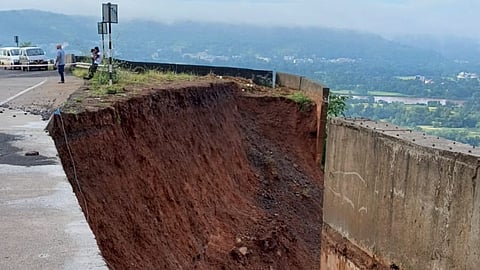 संरक्षक भिंत कोसळली तिथून जवळच पेढे गावाची वसाहत आहे. पण, सुदैवाने मातीचा भराव लोकवस्तीत न गेल्याने मोठा अनर्थ टळला. पण, रस्ता सिमेंटचा असल्याने खचला नाही. सध्या या भागातील वाहतूक एकेरी मार्गाने वळविण्यात आली असून, महामार्ग पूर्ववत होण्याबाबत अद्याप ठोस माहिती समोर आलेली नाही.