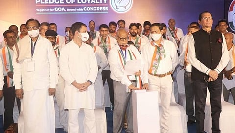 "मंदिर, मशीद आणि चर्चसमोर राहुल गांधी यांच्या उपस्थितीत शपथ घेतली आहे. आज आम्ही राहुल गांधी यांच्यासमोर शपथ घेतली आहे," असे काँग्रेसचे (Congress) उमेदवार संकल्प आमोणकर यांनी माहिती दिली.