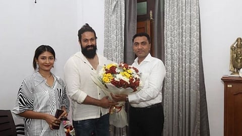 KGF-2 चित्रपटाने प्रेक्षकांना भुरळ घातली आहे. या चित्रपटाला चाहत्यांनी भरभरून प्रेम दिले आहे. चित्रपटातील मुख्य अभिनेता यश त्याच्या पत्नीसह गोव्याला आला आहे. गोव्यात यश आणि त्याच्या पत्नीने मुख्यमंत्री प्रमोद सावंत यांची भेट घेतली. याबाबत सावंत यांनी ट्वीट करून माहिती दिली. (South superstar Yash meets Goa CM Pramod Sawant)