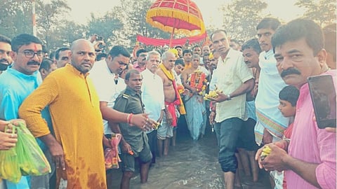 Mallikarjuna Temple: अलोट भक्तांच्या उपस्थितीत श्रीस्थळ येथील श्री मल्लिकार्जुन देवाचे आज राजबाग-तारीर येथे समुद्र स्नानाचा विधी पार पडला.